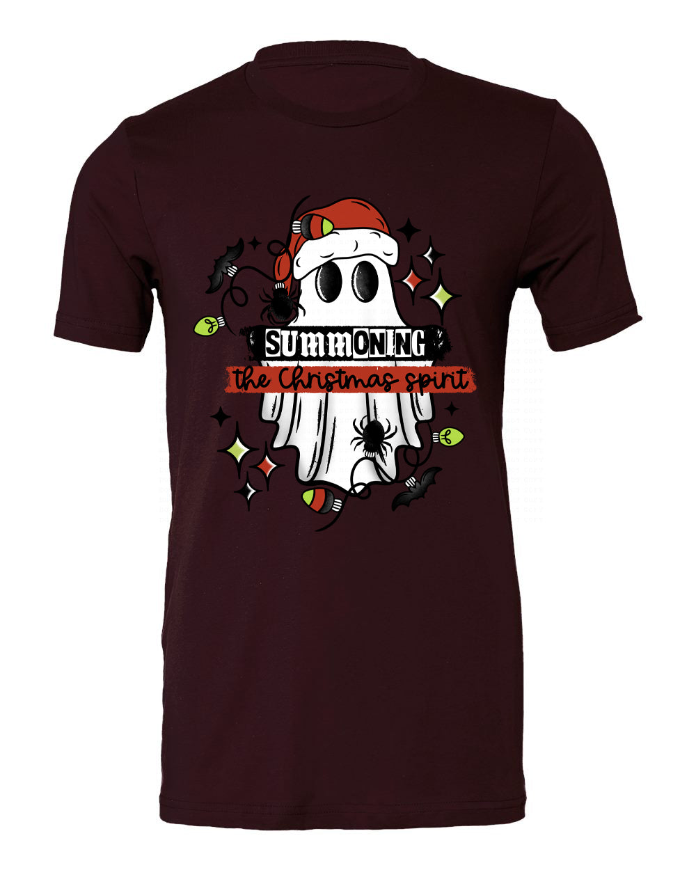 Bring your spooky side into the holiday season with this Summoning the Christmas Spirit tee. Featuring a festive ghost wrapped in Christmas lights, this design is for those who keep Halloween energy alive all year long. Perfect for holiday parties, coffee runs, or cozy nights under the tree.