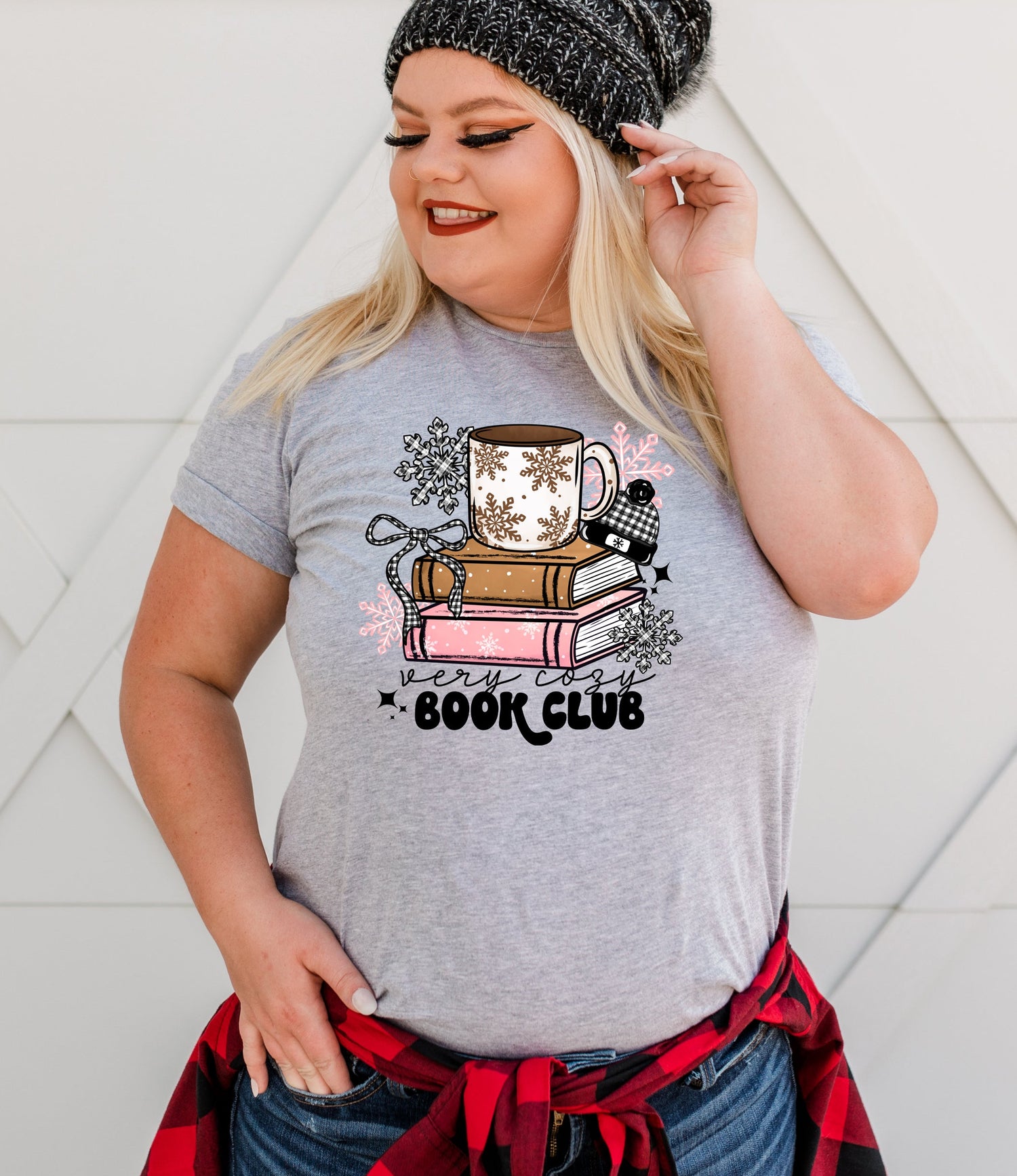 Curl up with your favorite story and a warm drink — this one’s for the book lovers and cozy chaos crew. The Very Cozy Book Club design features stacked books, a steaming mug, and soft blush accents that bring the winter vibe without going full holiday.